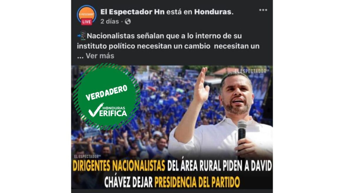 Una publicación de una página identificada como El espectador HN afirmando que dirigentes nacionalistas señalan que a lo interno de su instituto político necesitan un cambio.
