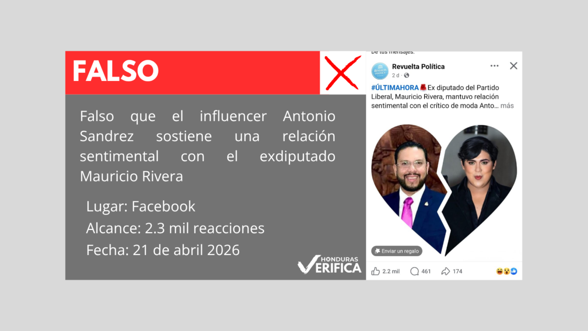 En redes sociales circula información falsa sobre una presunta relación amorosa entre el influencer y presentador, Antonio Sandrez y Mauricio Rivera, exdiputado del Partido Libertad y Refundación (Libre), ahora asesor del Partido Liberal de Honduras (PLH).