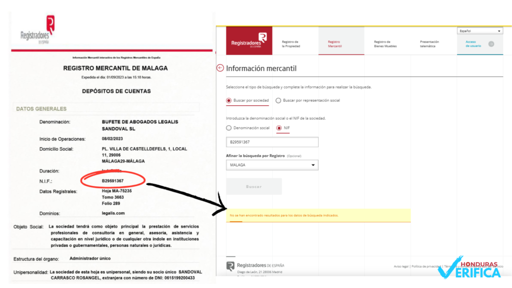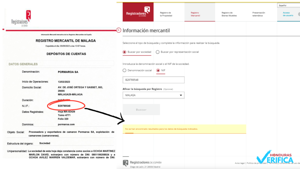 Los resultados para ambas empresas en los registros mercantiles de España no dan resultados para los datos de búsqueda.
