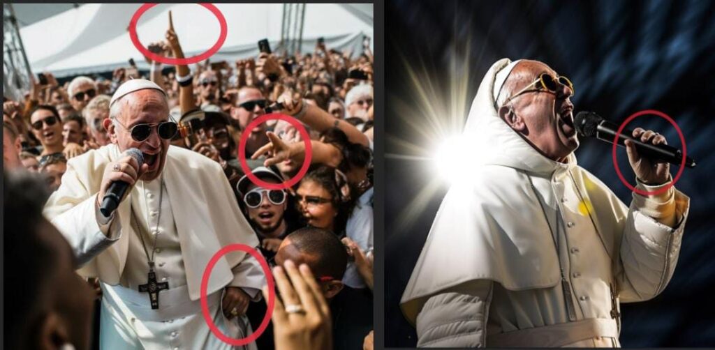 Las imágenes generadas por Inteligencia Artificial se especializan por ser más hiperrealistas que fotografías, estas imágenes tienden a tener pequeños detalles que dan pautas de ser falsas.