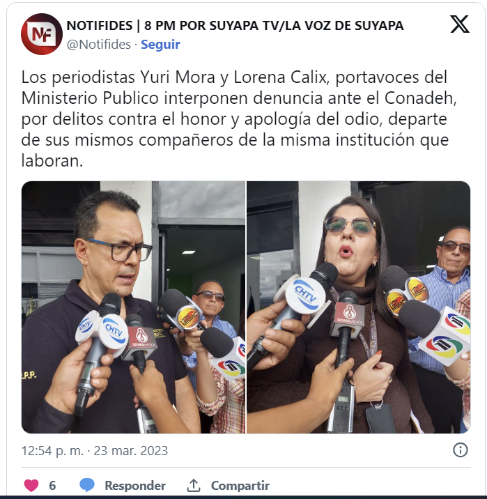En esta ocasión se difundió una campaña de odio contra dos periodistas, Lorena Calix y Yuri Mora, a través de las plataformas de Twitter y WhatApp. Leer Aquí