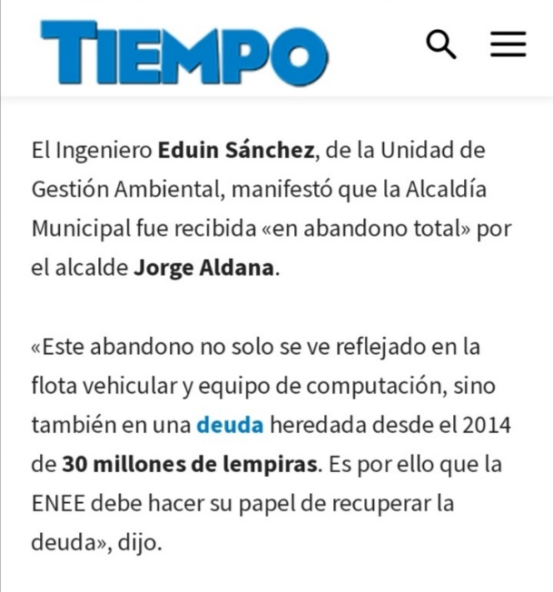 La publicación describe el corte de energía a todo el plantel número uno de la Alcaldía Municipal del Distrito Central (AMCD), por una deuda de 30 millones de lempiras.