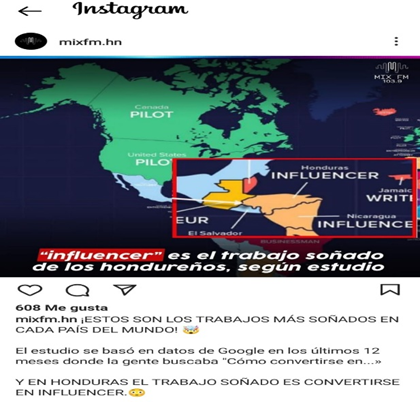 Mediante una publicación realizada por Mix FM HN donde compartían la información de que la mayoría de jóvenes hondureños sueñan con ser influencers, Honduras Verifica se dio la tarea de evaluar y verificar dicha información para emitir un veredicto.