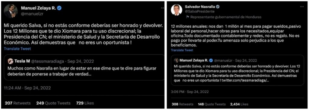 Anteriormente, Salvador Nasralla y Mel Zelaya se han visto en discrepancias en diferentes plataformas y en variedad de temas.