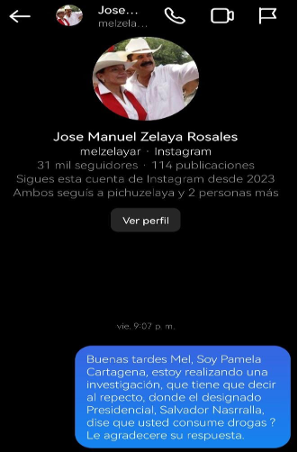 Con el cual Salvador respondió: “Preferiría que esa pregunta se la hicieras a mi amigo Mel Zelaya, que él es bastante más entendido que yo en drogas”.