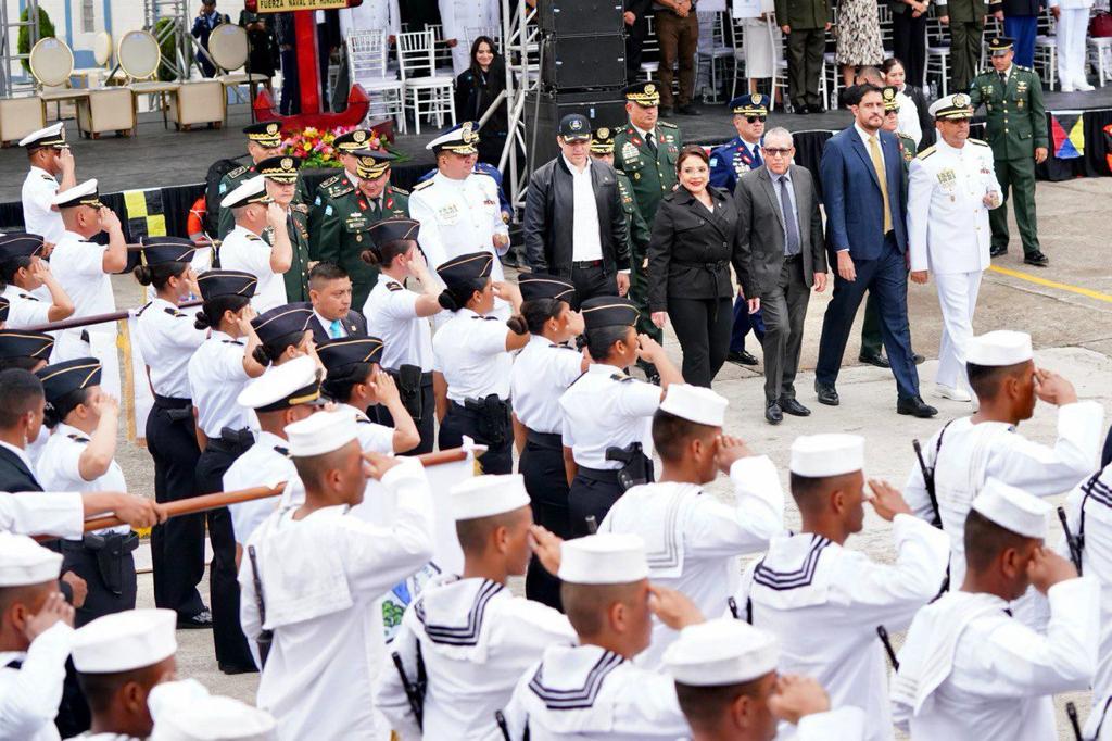 Durante la ceremonia del 158 aniversario de la Fuerza Naval de Honduras, tanto el general como la presidenta expresaron su repudio contra los golpes de estado en Honduras.