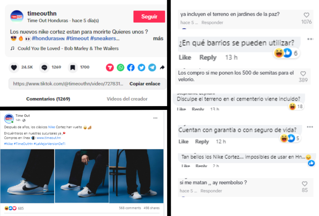Incluso la misma tienda publicó en Tiktok usando el mensaje de “Los nuevos Nike están para morirte”. Posicionando esta publicación con más de 300 mil vistas y más de 24 mil me gusta.